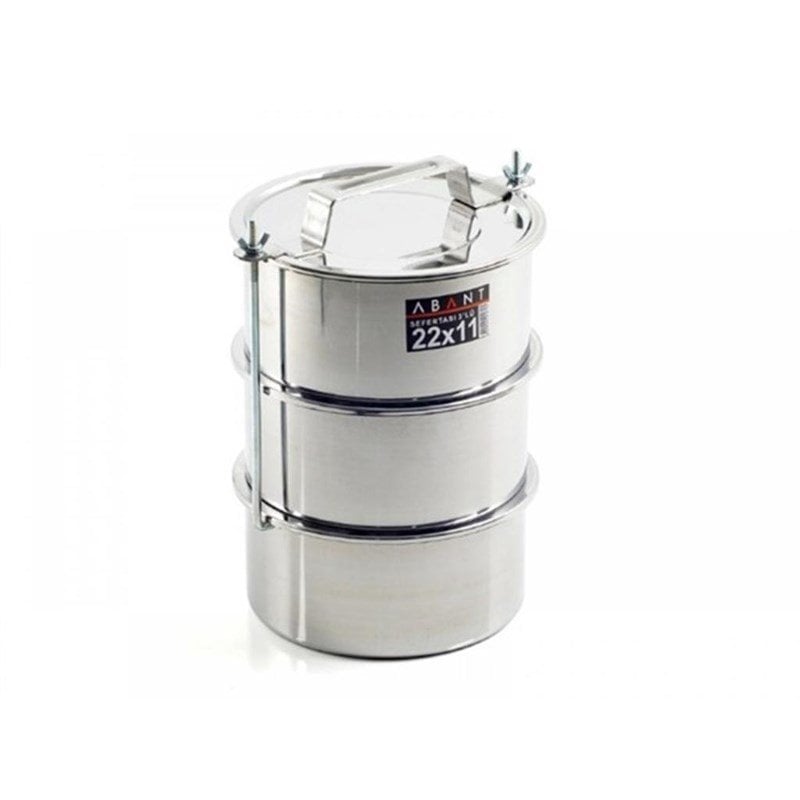 Abant Sefer Tası 22x11x3 Çapı: 22 cm Derinlik:11 cm Kat Adeti: 3 Adet Paslanmaz Çelik Kilitleme Mekanizmalı Bulaşık makinesinde yıkanabilir Isıtılabilir