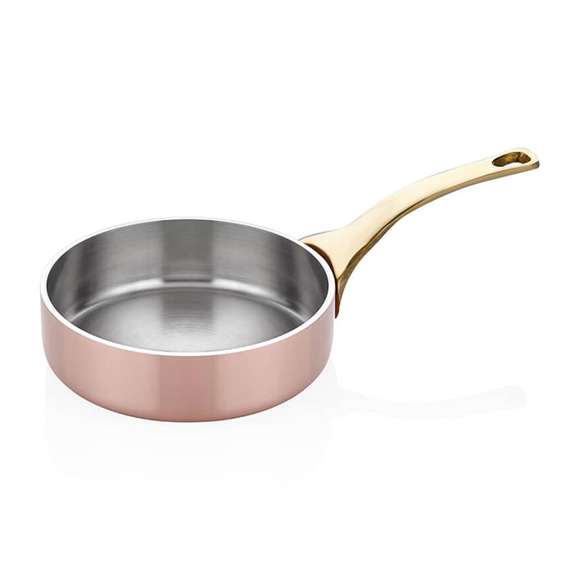 Altınbaşak A 101SO 10 Multi Metal Sunumluk 10×3 cm Bakır Multi – Metal Bakır Serisi. Ø10cm. Mini Yuvarlak, Servis Tava. 2,60mm 3 Katman (Bakır / Alüm. / 304) Gövde. Pirinç Sap, AG2 Alaşım Perçin. düz Taban. İç Satine/Dış Ayna Parlatma.