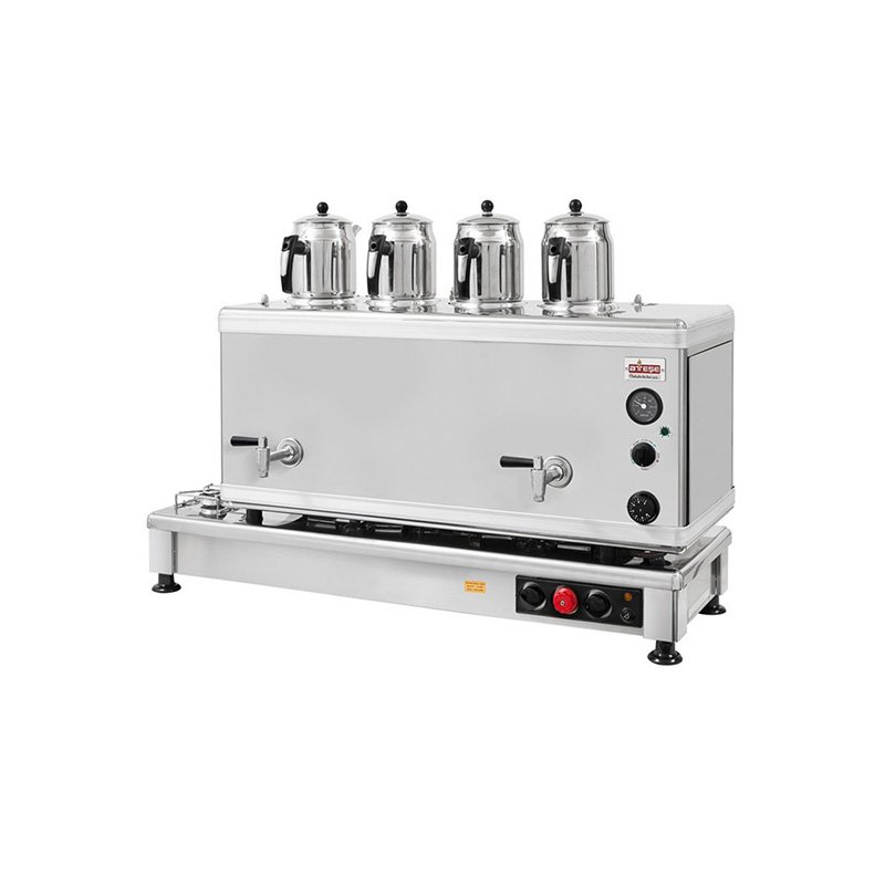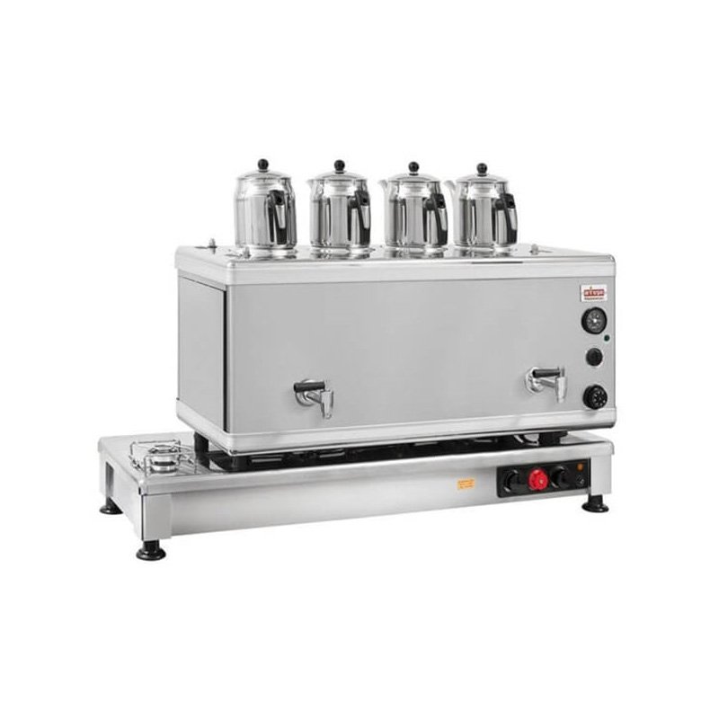 Ateşe Silver Otomatik Gazlı Elektrikli İnox 4 Demlikli Çay Kazanı, 45 Litre