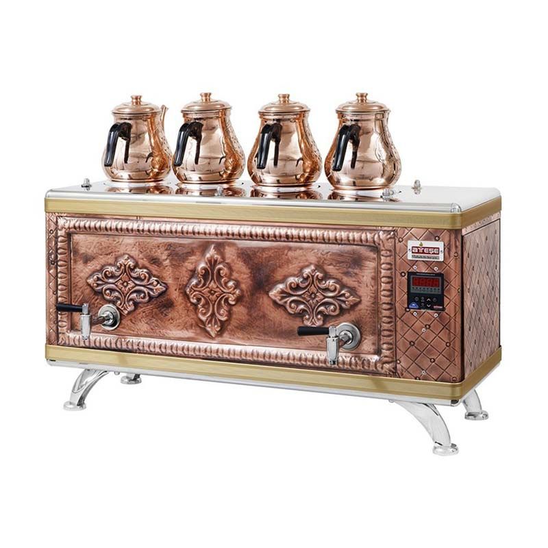 Ateşe Titanium Compact Akıllı Gazlı Elektrikli Bakır 4 Demlikli Çay Kazanı, 45 Litre |