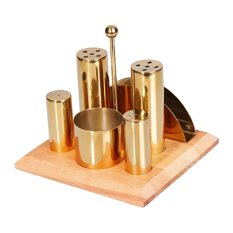 Biradlı Tuzluk ve Baharatlık Takımı, Yuvarlak, 6’lı, Altın