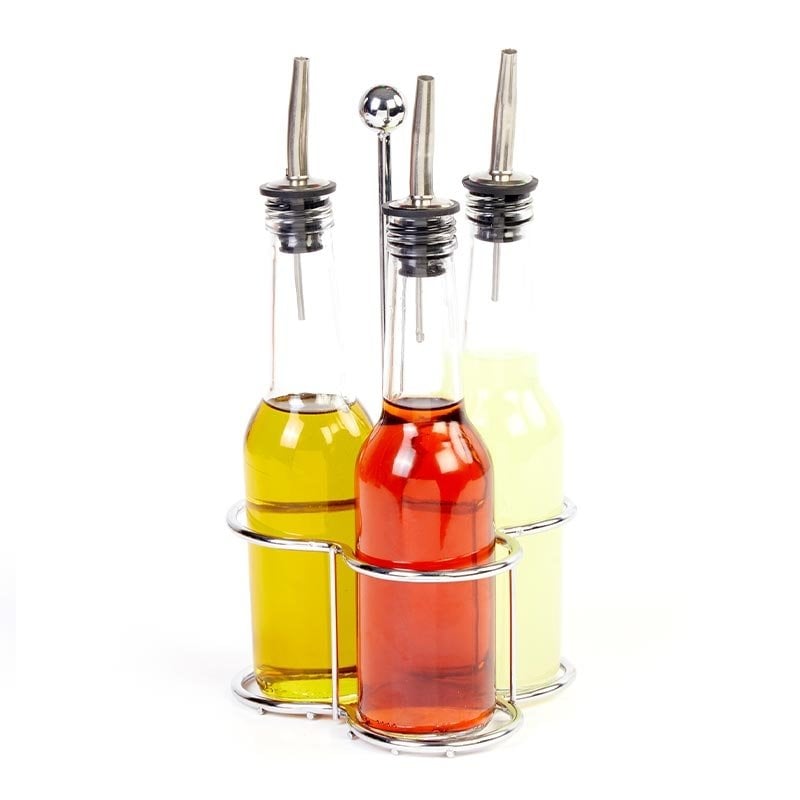Biradlı Yağlık Takımı, Oval, Tel Standlı, 3’lü, 250 cc Tel standı sayesinde kolaylıkla taşıyabilirsiniz. 3 adet yağlıktan oluşur. Yağlıklar oval formdadır. Her bir yağlık 250 cc’dir.