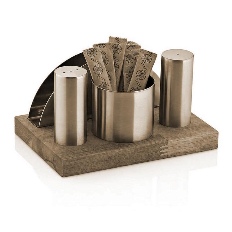 Biradlı GRV-65 Ahşap Standlı Tuzluk Takımı, 4\’lü, Altın