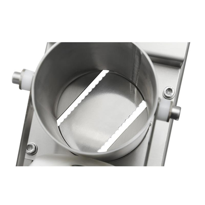 Mandolin kesme makinesinin bıçağı gıda temasına uyumlu paslanmaz çelik malzemeden üretilmesi sayesinde uzun süreli kullanım sağlar. 1,5mm-6,5mm arası ayarlanabilir ölçü mekanizması sayesinde istenilen kalınlık ayarı yapılabilir.
