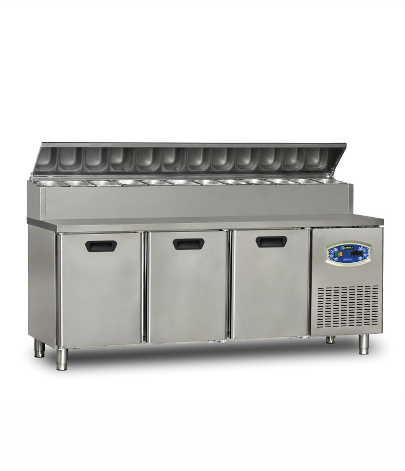 Dampak 3 Kapılı Tezgah Tip Buzdolabı Pizza Hazırlık Tablalı 200×70 Cm 450 L