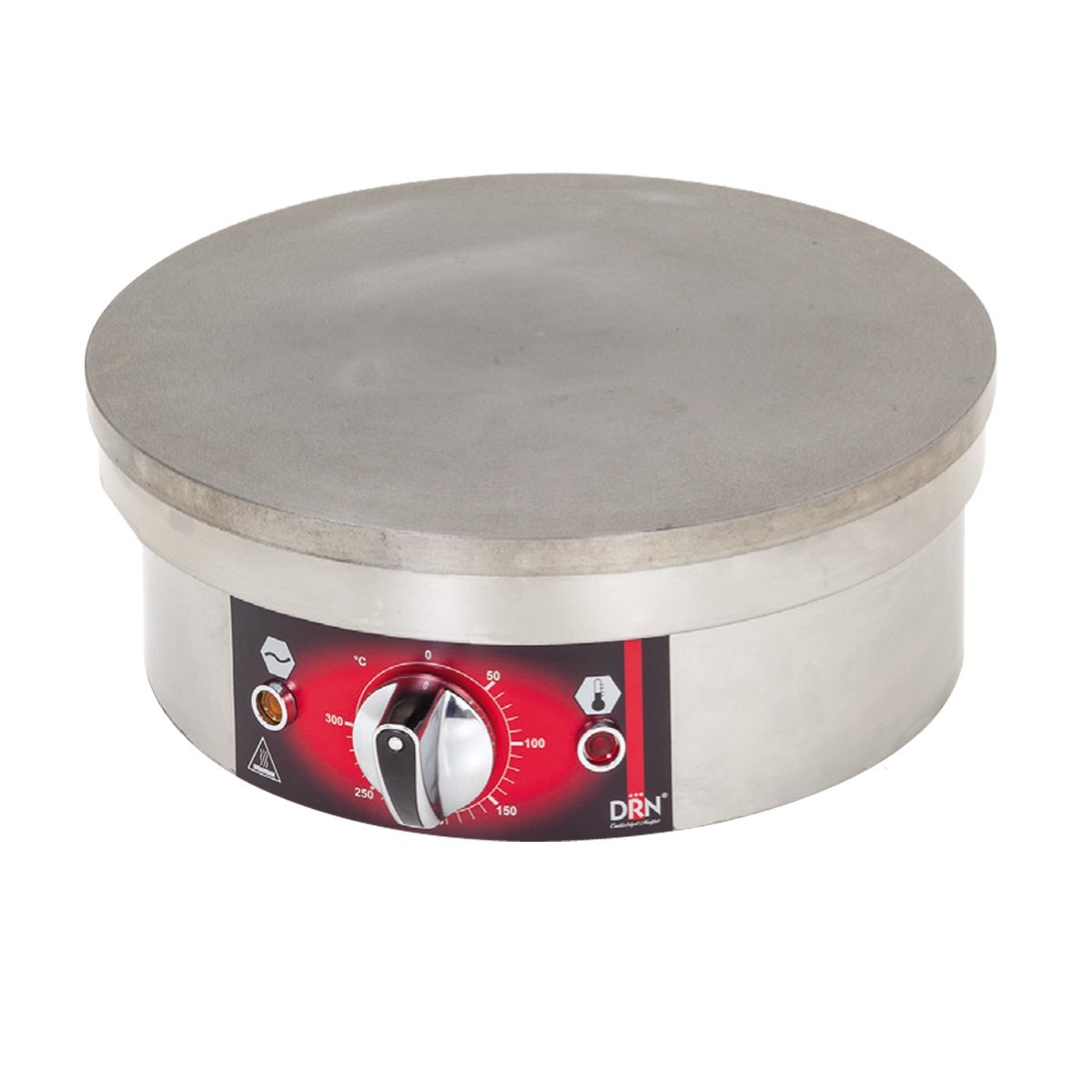 DRN KREP MAKİNESİ  YUVARLAK ELEKTRİKLİ Temel Özellikler: Paslanmaz çelik gövde Q40cm döküm pişirme yüzeyi 50-300 derece arasında ayarlanabilir sıcaklık Teknik Özellikler: mutfak10.com Model: DRNKRPYE-1 Kategori: KREP MAKİNESİ Tip: Elektrikli Kapasite: 1 Güç: 3 kW Gerilim: 220v Ebat: Q400X190mm Ağırlık: 17 kg Hacim: 0,07 m³