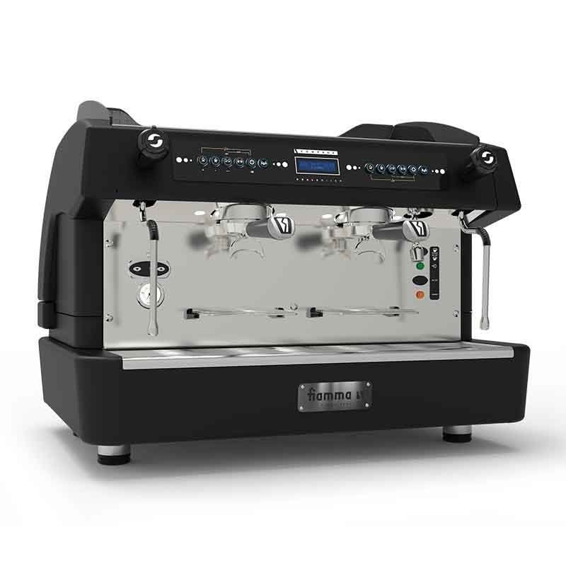 Fiamma Compass 2 Gruplu Espresso Kahve Makinesi, Siyah renkte ve çift kazanlı (double boiler) teknolojiye sahip bir kahve makinesidir. Bu makine, kahve ısısını +-1 derece ayarlayabilme özelliği sunar.