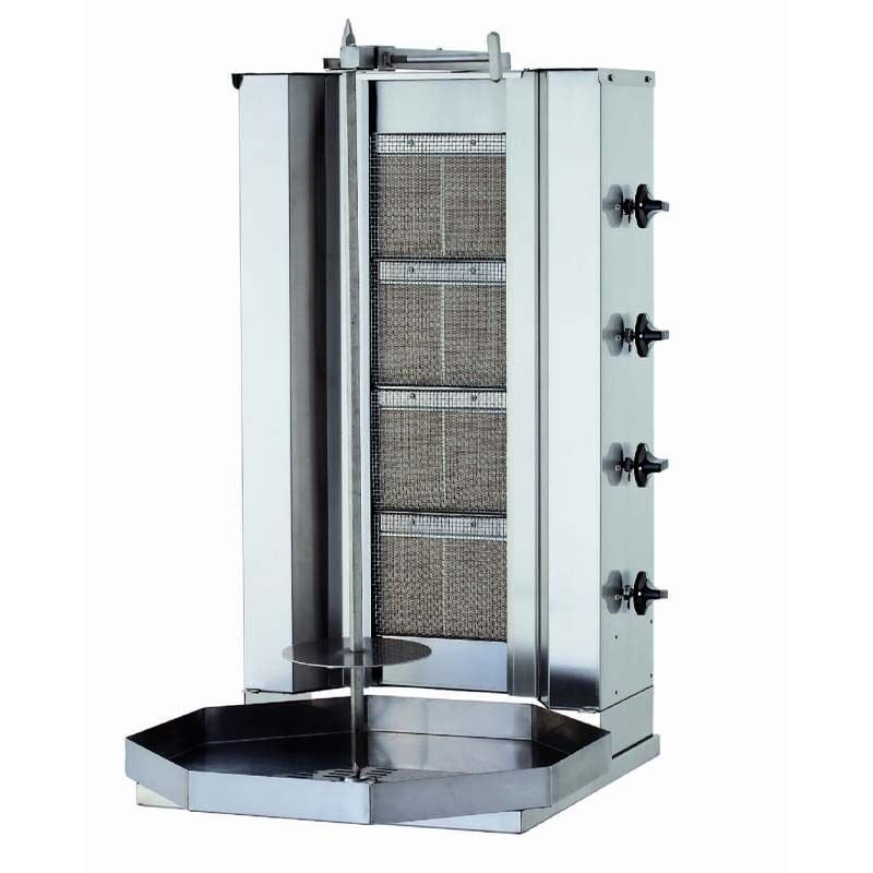 Doğalgaz veya Propan (LPG) ile çalışabilen bu cihaz, güvenilir bir enerji kaynağı seçeneği sunar. 12 mm genişliğinde içi dolu paslanmaz kılıç ve et sacı, dayanıklılık ve performans açısından üst düzey bir mutfak deneyimi sağlar. Emniyet ventilli gaz valfi, güvenli kullanımı destekler. Ayarlanabilir döner şişi, çeşitli pişirme ihtiyaçlarına uyum sağlar. Paslanmaz çelik gövde, hijyenik standartları karşılar ve uzun ömürlü bir kullanım sunar. AISI-310S Cr-Ni radyan koruma teli, daha fazla dayanıklılık ve güvenlik sağlar. Bu ürün, hijyen, emniyet ve uzun ömür kriterlerini karşılayarak, mutfakta güvenilir bir performans vadediyor.