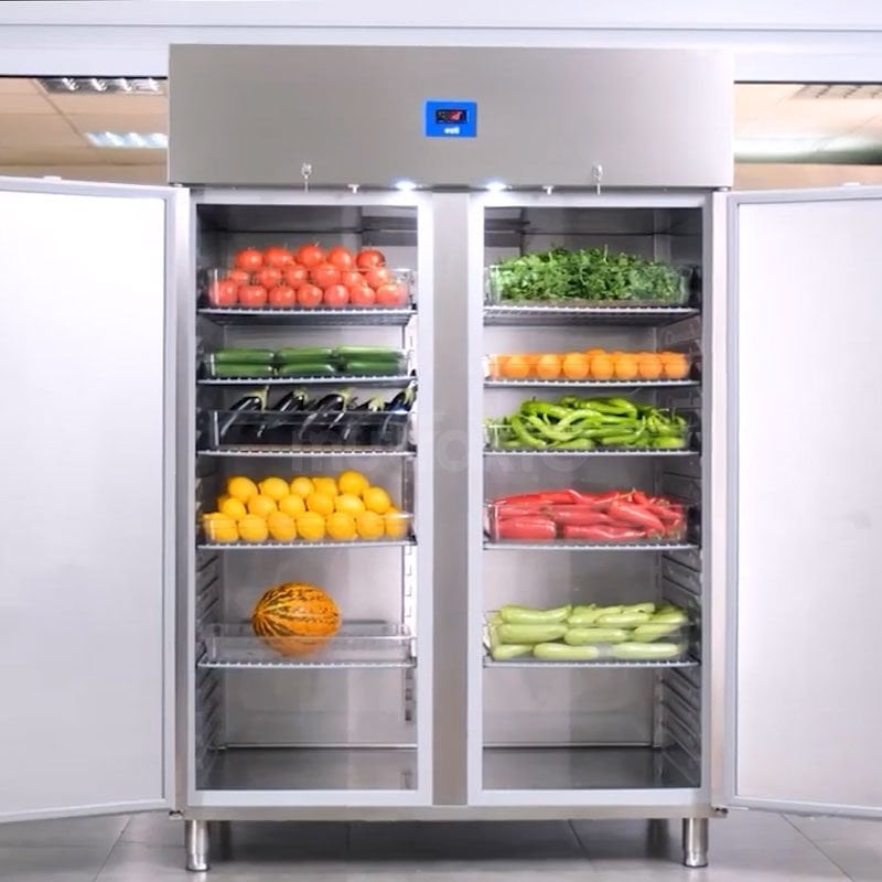 GN 2/1 raflı iki kapılı buzdolabı.